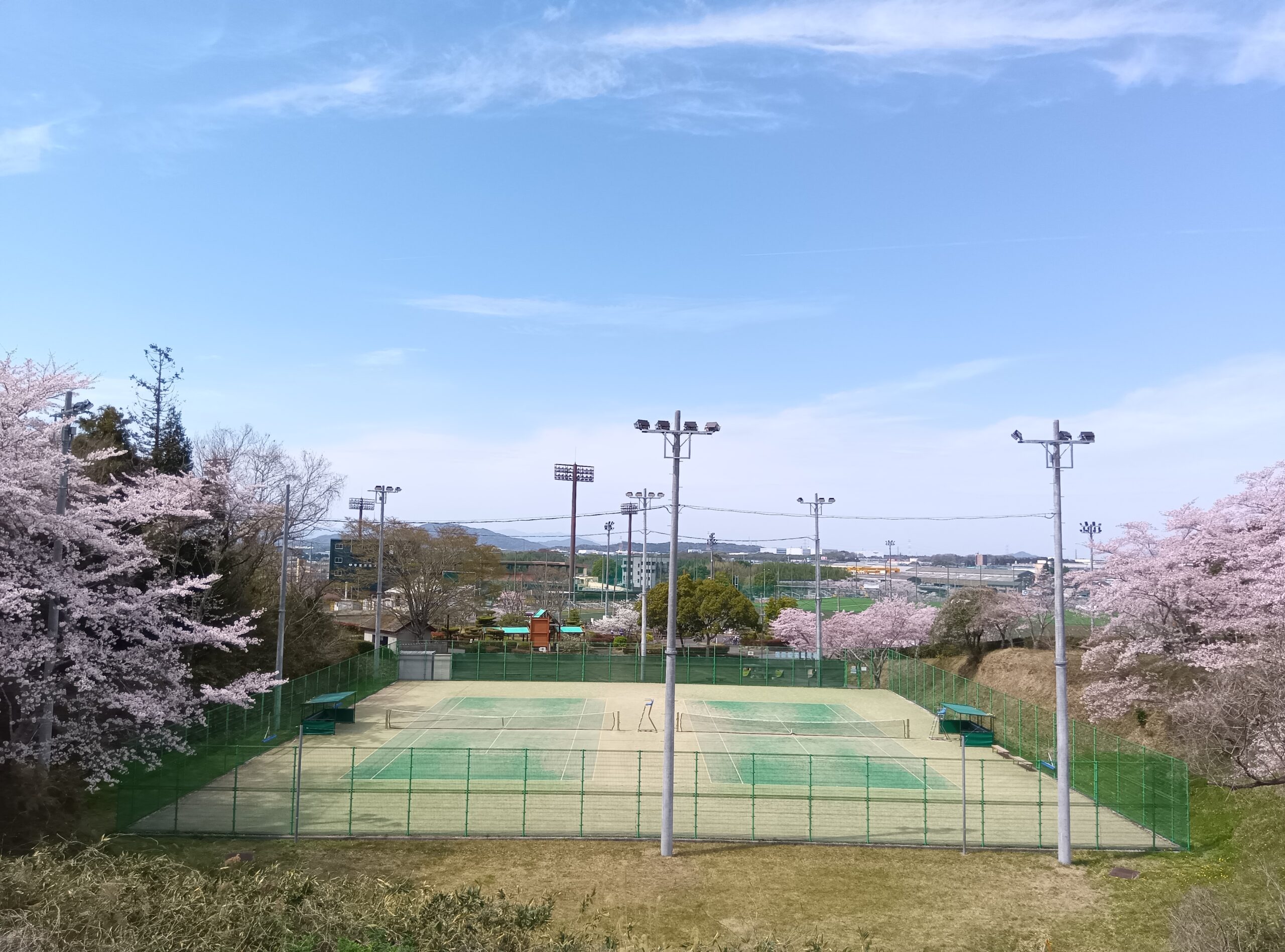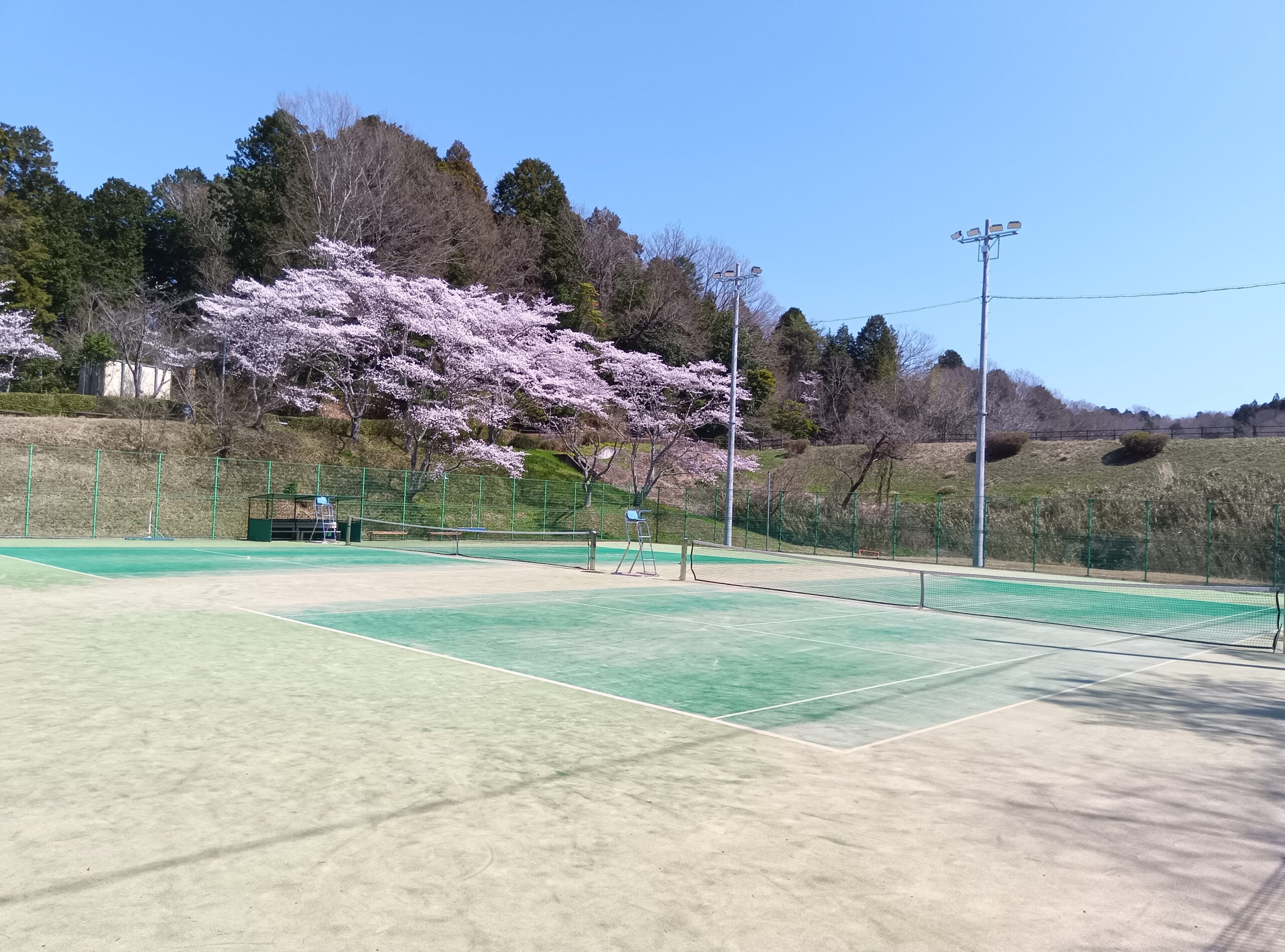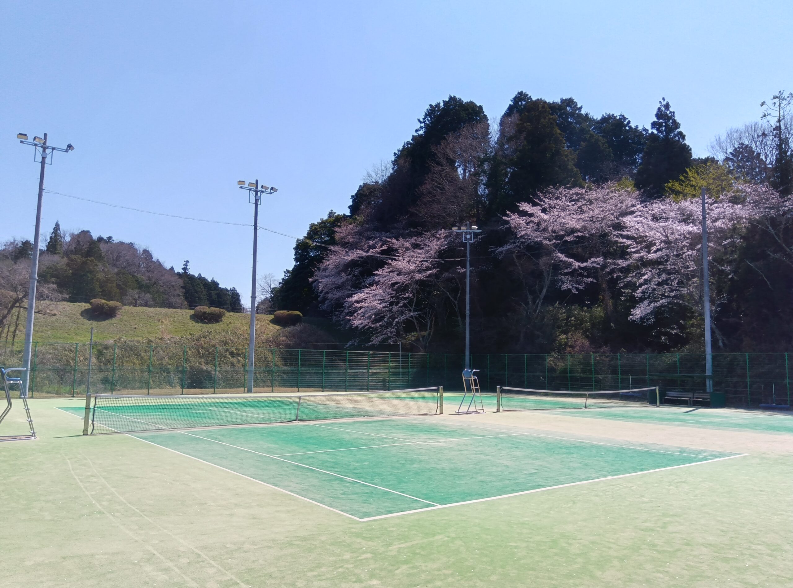 砂入り人工芝コート2面のテニスコートです。 砂入り人工芝は、靴の摩擦を軽減しブレ-キの効きすぎによる怪我などを防止します。 硬式テニスでは、球速が遅くボールの弾みも弱いです。 水はけが良く、雨上がりでもあまり整備せずに使用できます。